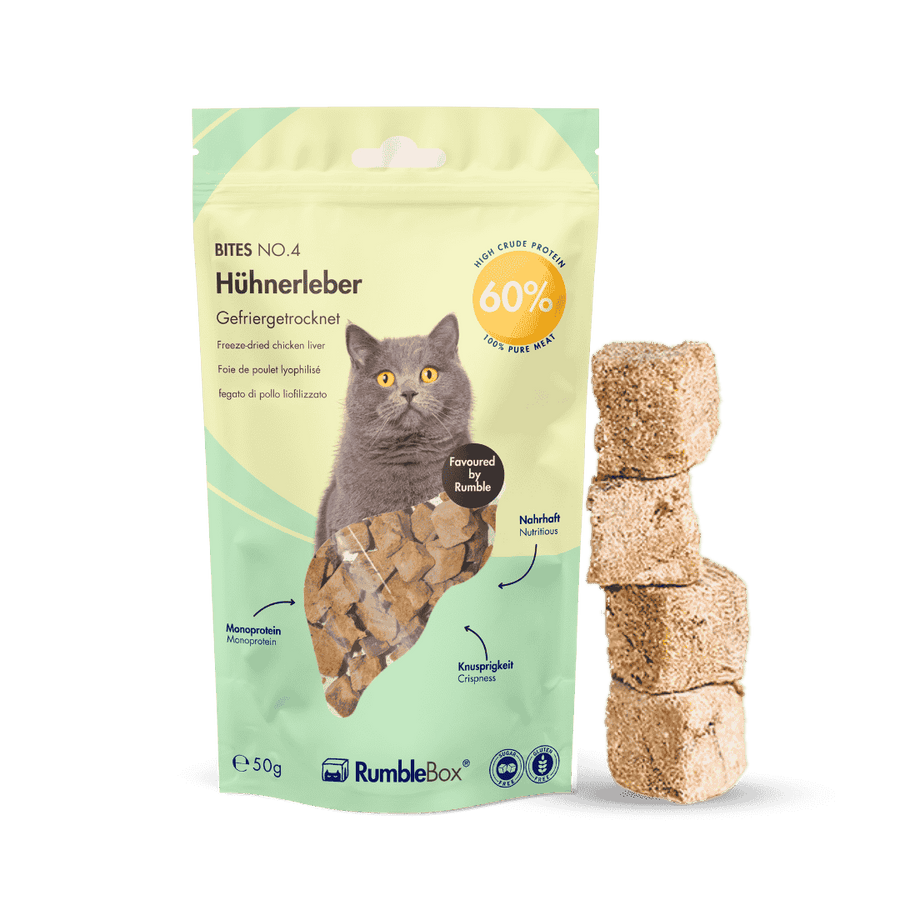 Gefriergetrocknete Katzensnacks von RumbleBox: Natürlich & gesund für jede Lebensphase