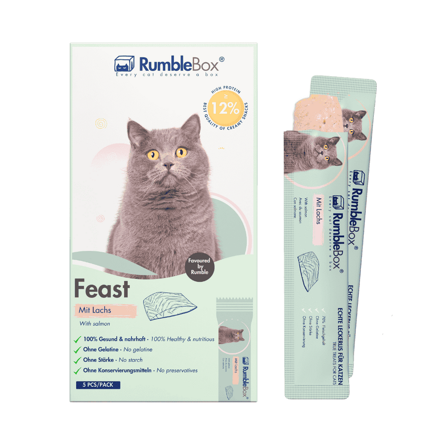 Im Gegensatz zu anderen cremigen Snacks, die oft aus Fleischmehl oder einer kleinen Menge Fleisch bestehen, bieten wir die Feast Schleckies mit einem hohen Fleischanteil von 70 %. Wir verzichten auf jegliche unnötigen Zusätze und ergänzen stattdessen gesunde Inhaltsstoffe wie Ei und Taurin, die das Wohlbefinden der Katze unterstützen. Taurin trägt zur Unterstützung der Sehkraft bei, während frisches Ei für ein glänzendes Fell sorgt.
